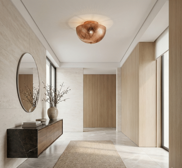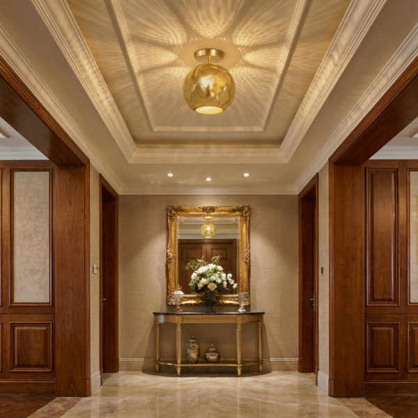 $344.00 – $648.00Price range: $344.00 through $648.0010" x 12" (25.40 x 30.5 cm)12" x 14" (30.48 x 35.6 cm)6" x 8.5" (15.24 x 21.6 cm)ClearA sophisticated semi-flush mount light featuring a spherical shade with intricate hand-pierced Moroccan patterns. This modern fixture combines traditional craftsmanship with contemporary design to create dramatic ambient lighting. Key Features: Spherical pierced shade Matching ceiling mount Premium metal construction LED bulb included Close-to-ceiling design Room Applications: Hallway: Creates welcoming atmosphere […]