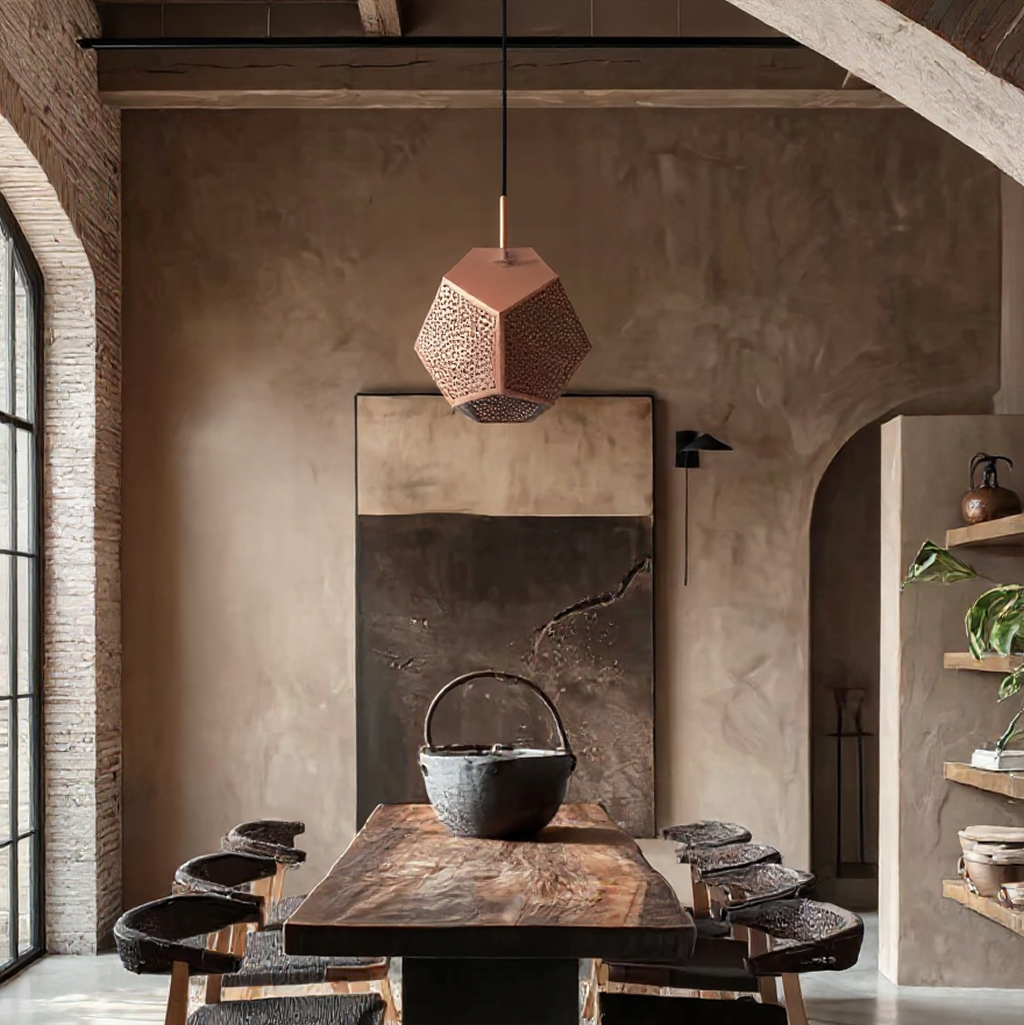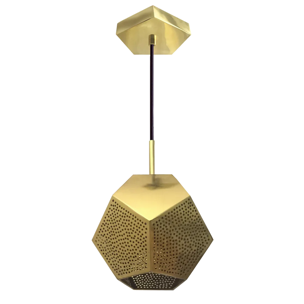 A stunning geometric pendant light featuring intricate hand-pierced patterns in a hexagonal design. This modern Moroccan masterpiece combines traditional craftsmanship with contemporary aesthetics, crafted in premium metals to create dramatic lighting effects.