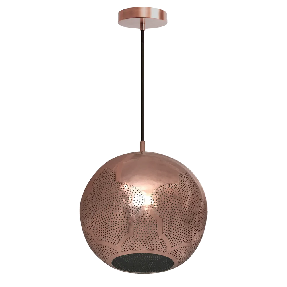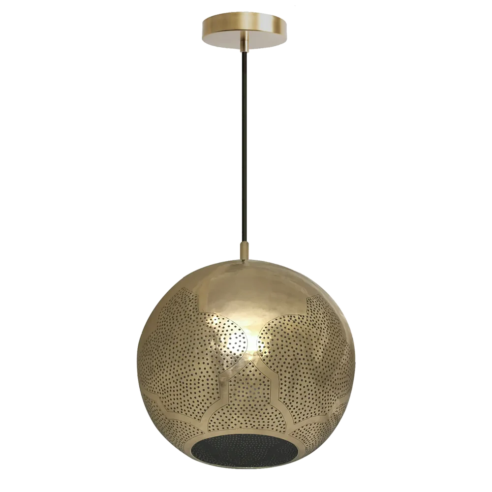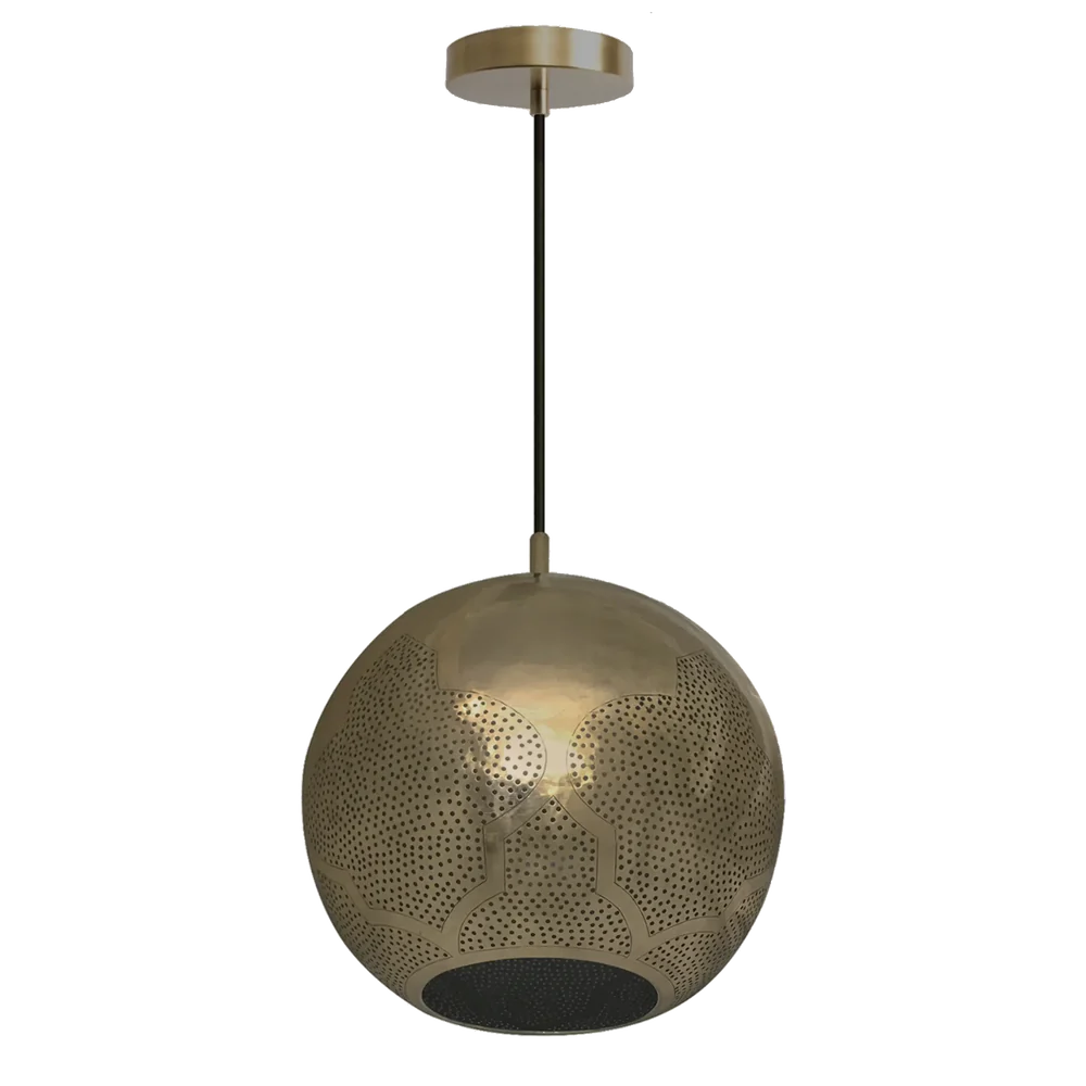 The HUSN Reversed Pendant Light is a striking spherical pendant featuring meticulous hand-cut dot patterns. The black metal shade combined with precise perforations creates a sophisticated lighting statement perfect for modern and traditional spaces.