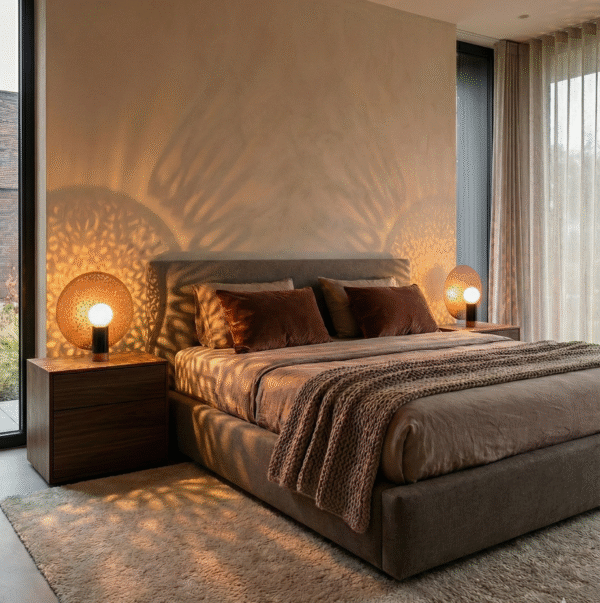 $344.00 – $495.00Price range: $344.00 through $495.0011" x 11" (27.94 x 27.9 cm)7" x 7" (17.78 x 17.8 cm)9" x 9" (22.86 x 22.9 cm)ClearA luxurious geometric table lamp featuring a hand-pierced hexagonal shade atop a solid walnut base. This masterpiece combines contemporary design with traditional Moroccan craftsmanship to create an enchanting lighting experience. Key Features: Hexagonal pierced metal shade Solid walnut geometric base Artisanal hand-pierced patterns Premium metal construction Artistic shadow projection Room […]